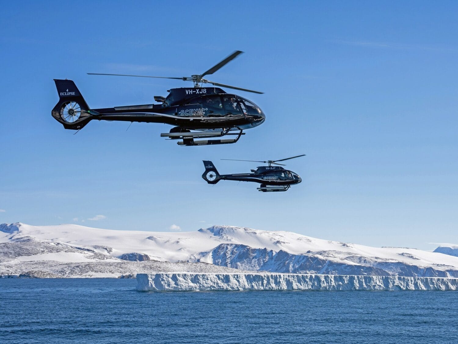 Explore like never before with two onboard helicopters offering breathtaking aerial views of Europe and the Scenic Neptune submersible for underwater exploration.
