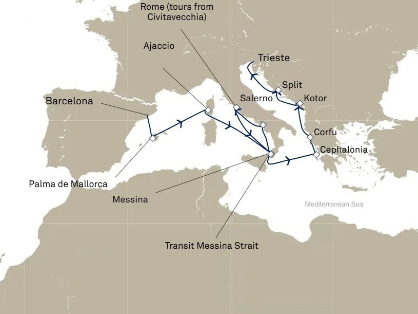 Discover historic cities, sun-soaked shores, and timeless European charm on this 14 night Mediterranean cruise.