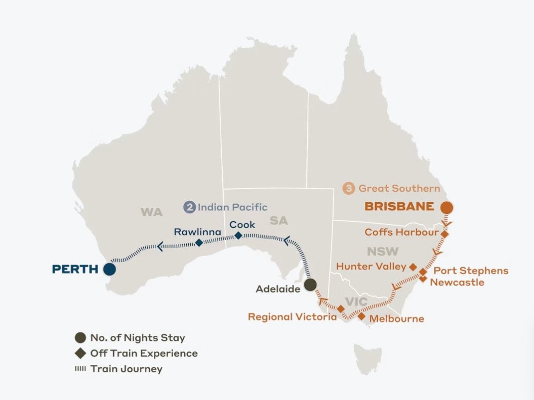 Discover more Rail Holidays across Australia. From The Ghan’s outback crossings to the Indian Pacific and Great Southern, these journeys showcase the best of travel by train.