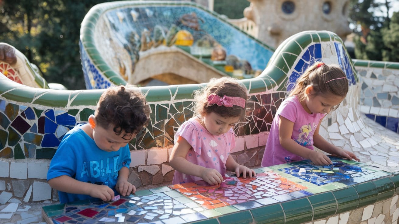 • GaudĂ­ Mosaics Workshop: Kids create colourful mosaics inspired by Gaudí’s designs at Park GĂĽell, learning about shapes and colours through hands-on art.
