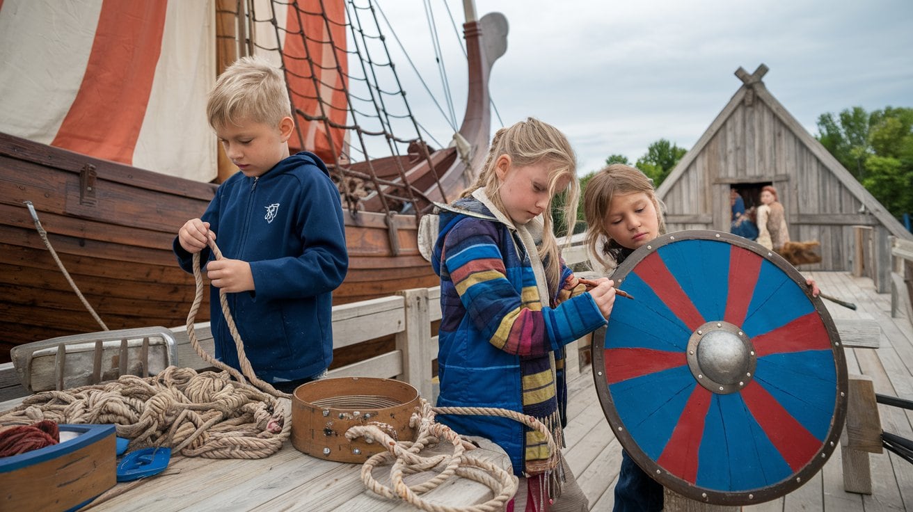 • Viking Ship Exploration: Kids can step aboard reconstructed Viking ships, learning about Viking life through hands-on activities such as rope-making and shield painting.