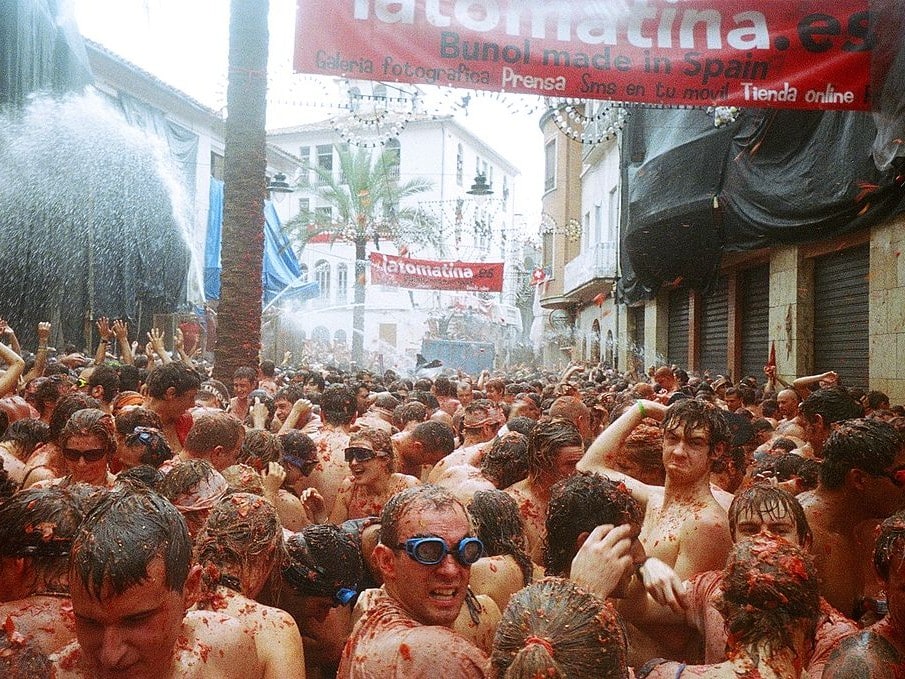 - La Tomatina is held every August in Buñol, Spain famous for a spectacular tomato fight.